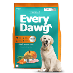 Wiggles EveryDawg (tm) dry for adult dogs is a completely balanced meal with ample protein and fat to energise and strengthen your pooch. Fish oil and hemp powder prevent inflammation and enhance brain function. Carrot, barley grass, and other natural superfoods help build a strong digestive system while also boosting immunity for your dog. Most importantly, it's vet approved.
