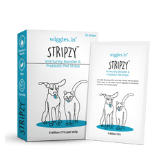 These fast-acting probiotic strips melt within seconds in your pet’s mouth, aiding digestion and enhancing immunity. Made with 100% pet-safe ingredients, Stripzy™ has zero risk of choking. At Wiggles we are dedicated to making pet healthcare effective and easy for pets and their pet parents. Most importantly, it is vet approved.