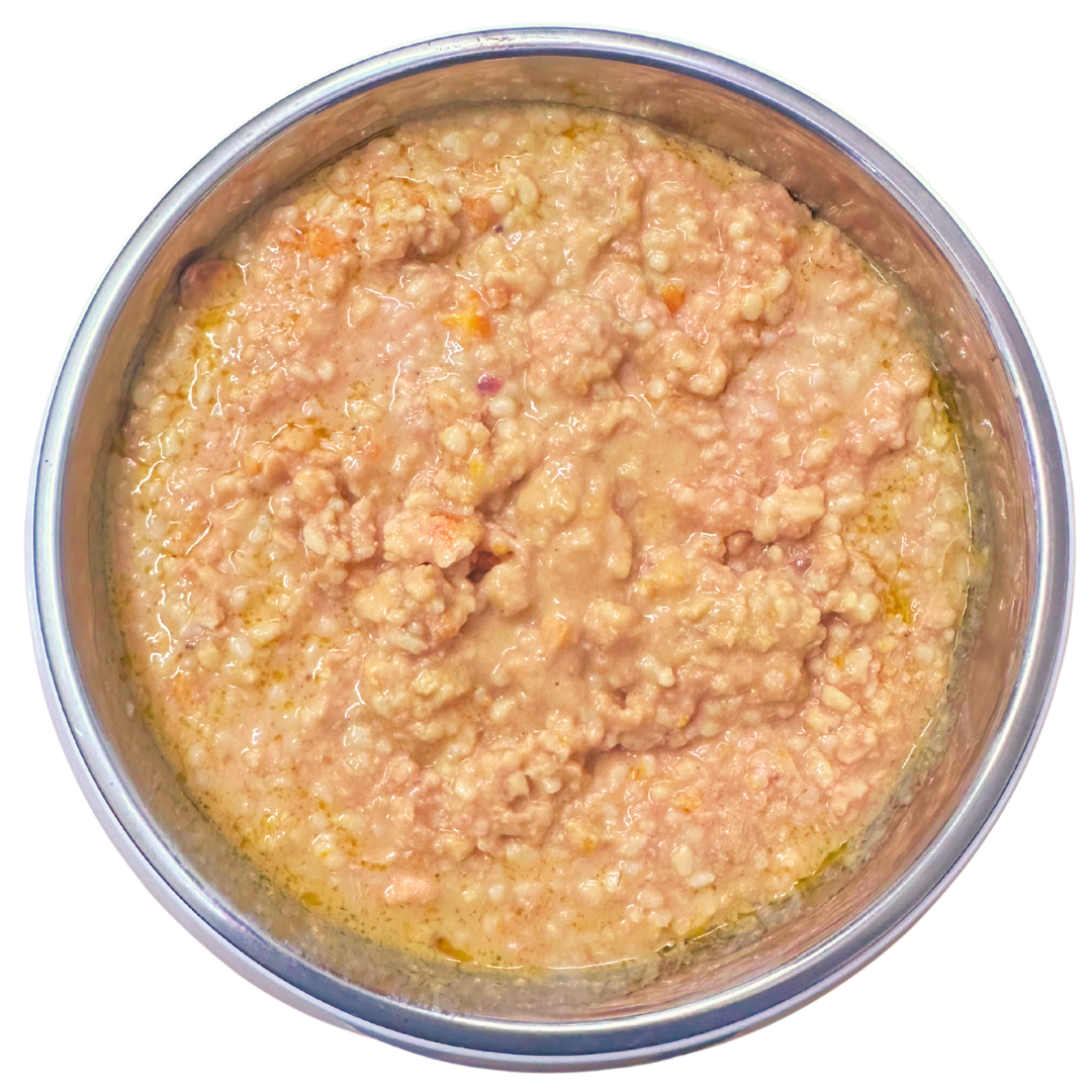 It’s a complete and balanced meal — not just a topper. Made with real chicken, vegetables, Ayurvedic herbs, and prebiotics, Wiggles Wet Food contains everything your dog needs for daily nutrition. You can feed it on its own or mix it with kibble.