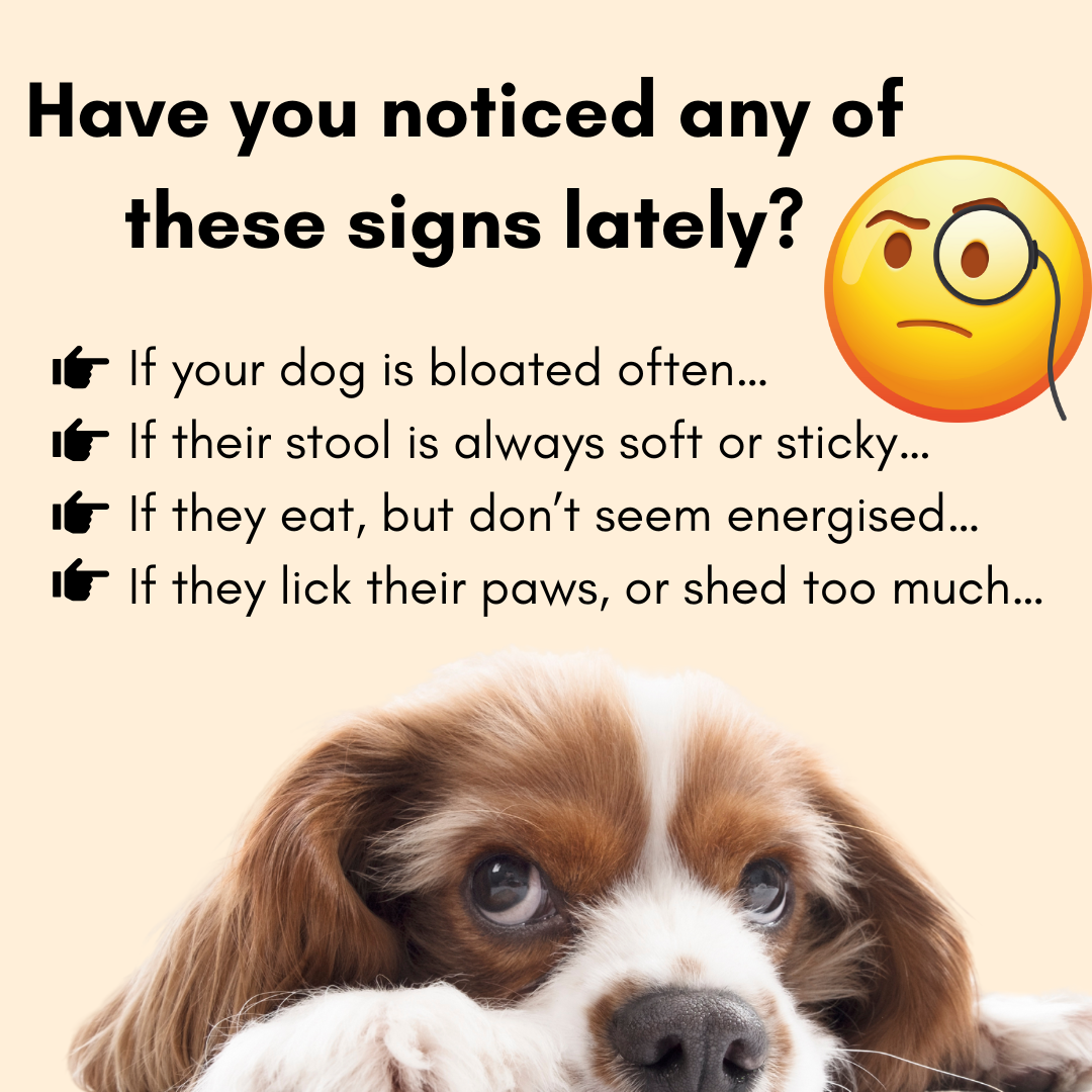They’re often signs of poor gut health — the part of your dog’s body that affects everything from digestion to energy to immunity.
