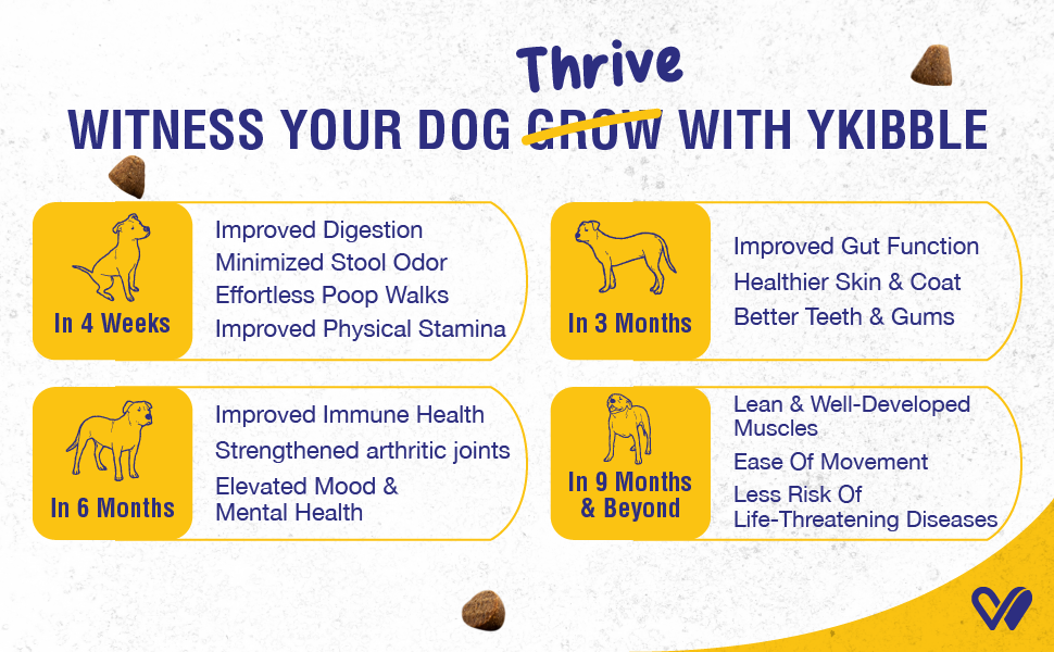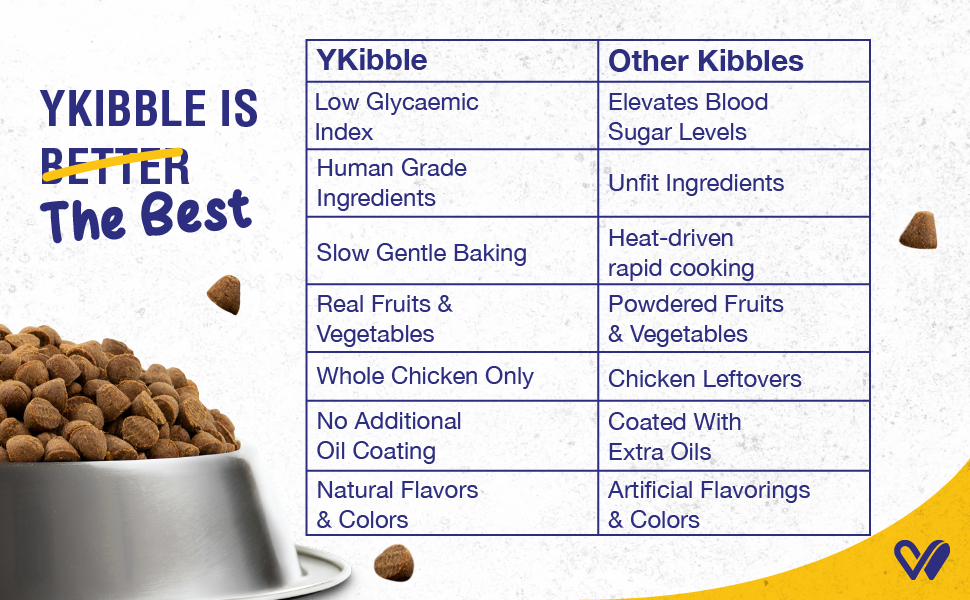 Ykibble is a slow-cooked, oven baked food, bringing you the texture and convenience of dry food without compromising on ingredient integrity or taste. It is made with 100% real farm fresh, non-GMO ingredients. It's oven-baked technology keeps the natural minerals, vitamins & other nutrients in every ingredient intact, making it a complete & balanced meal for adult & senior dogs....